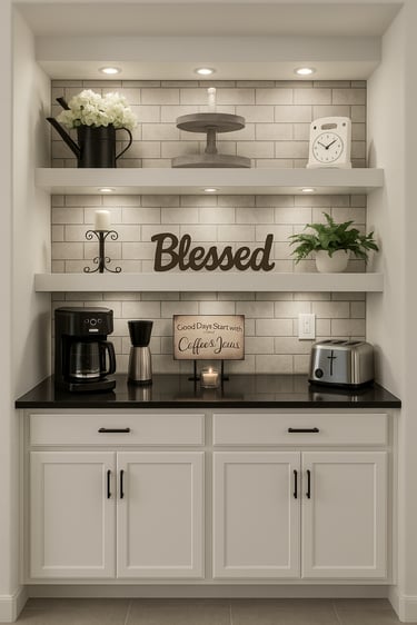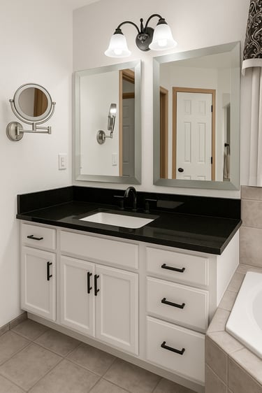 Along with the kitchen transformation, Summit Design and Fabrication updated the bathrooms to match the new style of the home, created a custom coffee bar, added custom cabinetry in the laundry room, and finished the upgraded look throughout the space with a custom entertainment center that brought everything together.