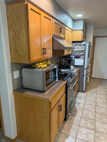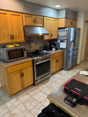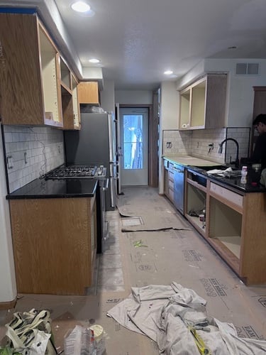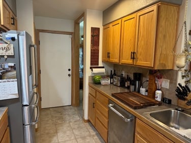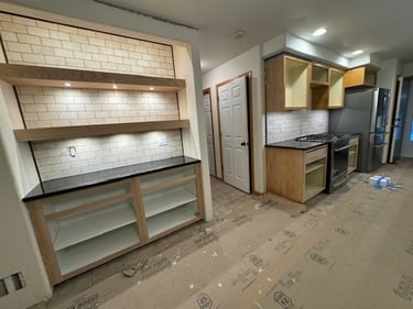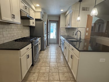 The full kitchen remodel completely transformed an outdated, closed in space into a bright, modern, functional kitchen tailored for everyday living. The original kitchen featured aged oak cabinetry, limited cabinet space, and dated finishes. Our goal was to create a clean, updated high-end appearance- without exceeding the client's budget.